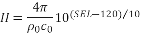 is the reference time-integrated squared sound pressure of 1 µPa2s. For impulsive sounds it has become customary to utilise the T90 time period for calculating and reporting Root-mean sound pressure levels (RMS). This is the interval over which the cumulative energy curve rises from 5% to 95% of the total energy and therefore contains 90% of the sound energy. - Based on this definition of SEL, and assuming a point source, the total acoustic energy (H) radiating into the water can be written as: